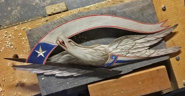 EAGLES & WHALES - Beautiful patriotic Bellamy eagles for home display. Following in John Bellamy’s ability to interchange heads, wings, and banners, these eagles are offered in a large variety of styles and configurations.